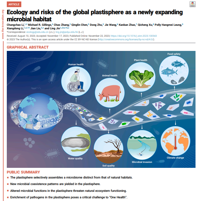 引用格式:Li C, Gillings M, Zhang C, et al. 2024. Ecology and risks of the global plastisphere as a newly expanding microbial habitat.The Innovation,5(1):100543.